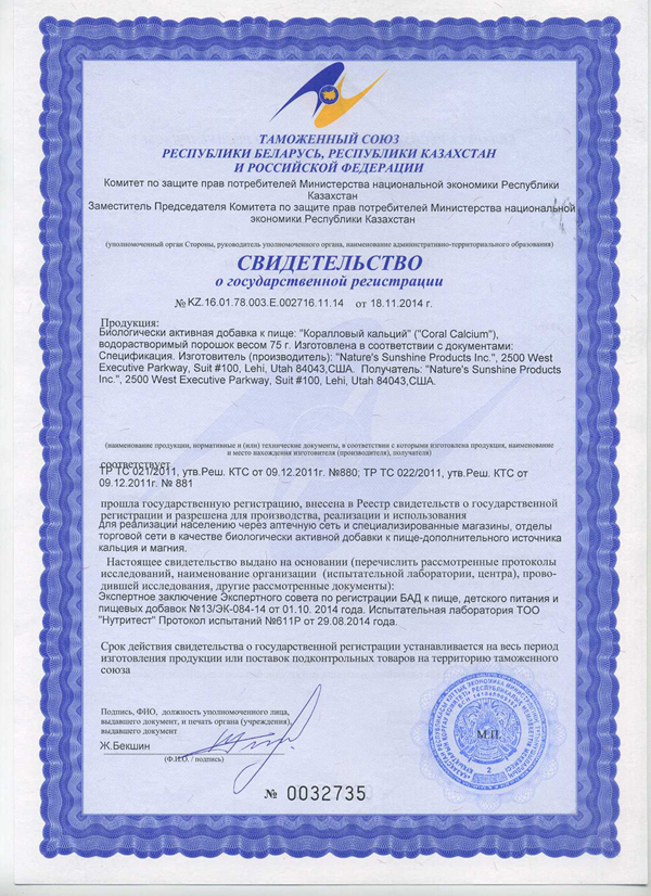 БАД Коралловый кальций получен из измельченных кораллов, собранных в море около островов Рюкю (Япония), которые содержат 20-28% кальция и 10-14% магния (соотношение 2:1). Содержит карбонаты кальция и магния, а также небольшое количество других биоэлементов (калий, фосфор, железо, сера, кремний, хром, марганец, медь, цинк и др.). Более 4 млн. японцев регулярно применяют коралловый кальций. Его используют не только при остеопорозе, но и при гипертонической болезни, деструктивных заболеваниях (артрозо-артриты, радикулиты, пяточные шпоры и др.). Имеются наблюдения, когда после 2-3 месяцев приема кораллового кальция наблюдали улучшение у 80% больных ревматоидным полиартритом. Коралловый кальций является мощным натуральным сорбентом, который очень быстро связывает хлор (не только неорганический, но и органический), соли тяжелых металлов, токсины. В состав препарата также входит монтмориллонит (бентонит), который относится к подклассу слоистых силикатов и является уникальным источником железа, кремния, магния и других биоэлементов.
