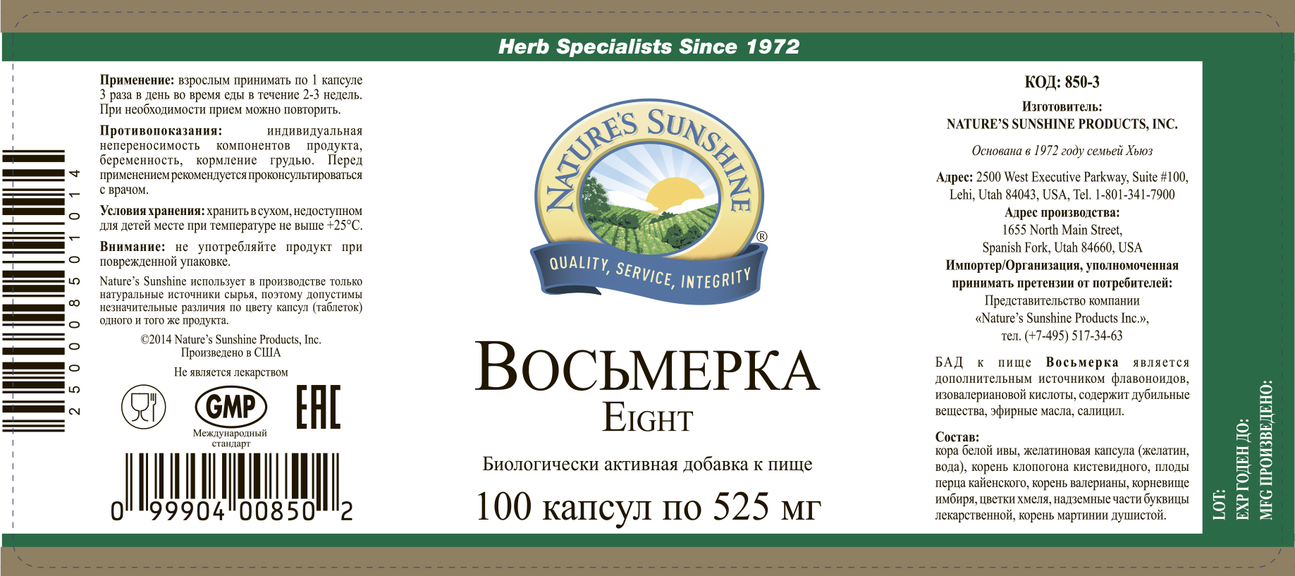 Восьмерка представляет собой комплекс из 8 растений, дополняющих и усиливающих действие друг друга. Полезна для гармонизации работы нервной системы.