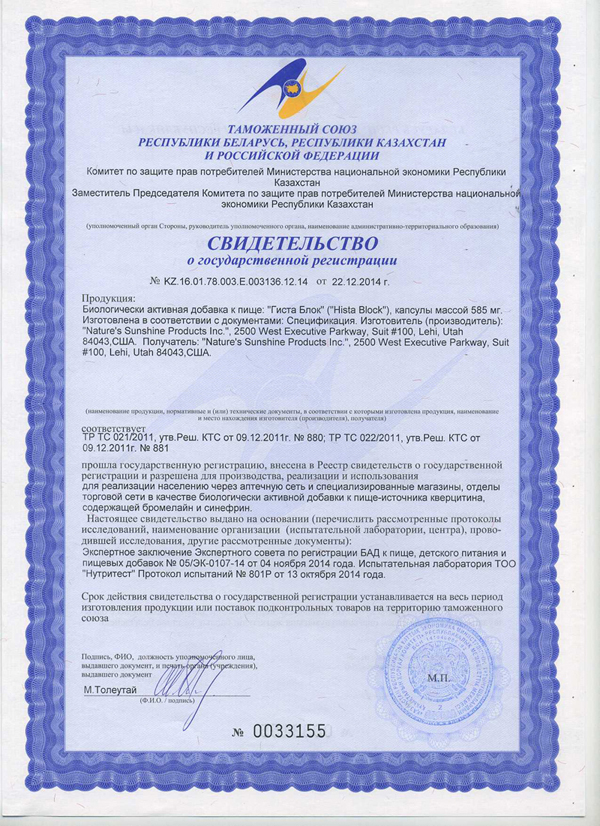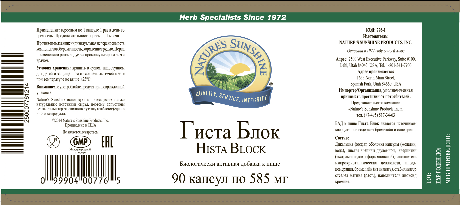 БАД к пище Гиста Блок является дополнительным источником кверцитина, содержит бромелайн и синефрин.
