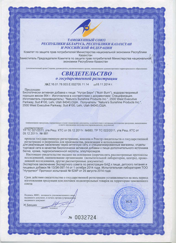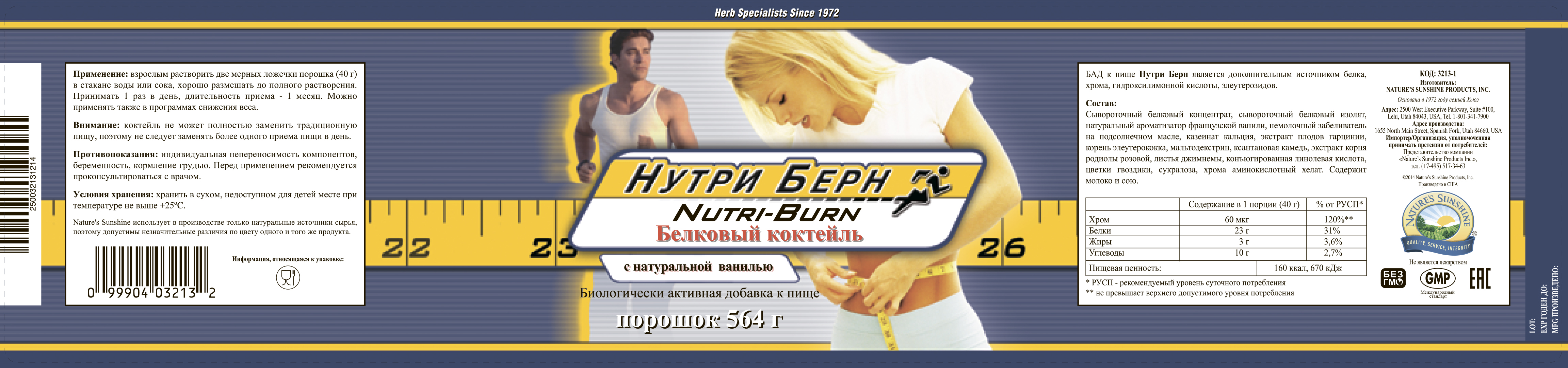 БАД к пище Нутри Берн является дополнительным источником белка, хрома, гидроксилимонной кислоты, элеутерозидов.