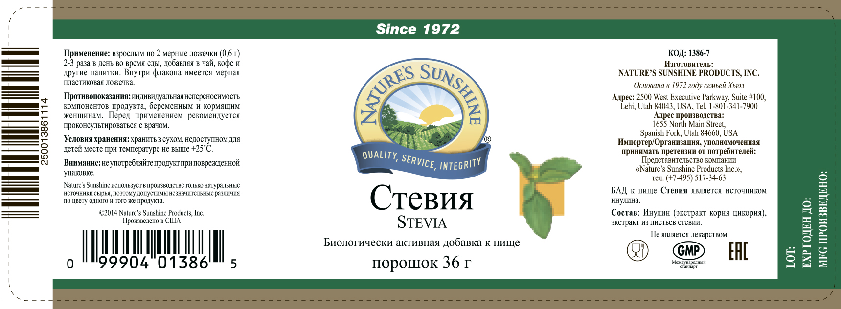 БАД к пище Стевия является источником инулина.